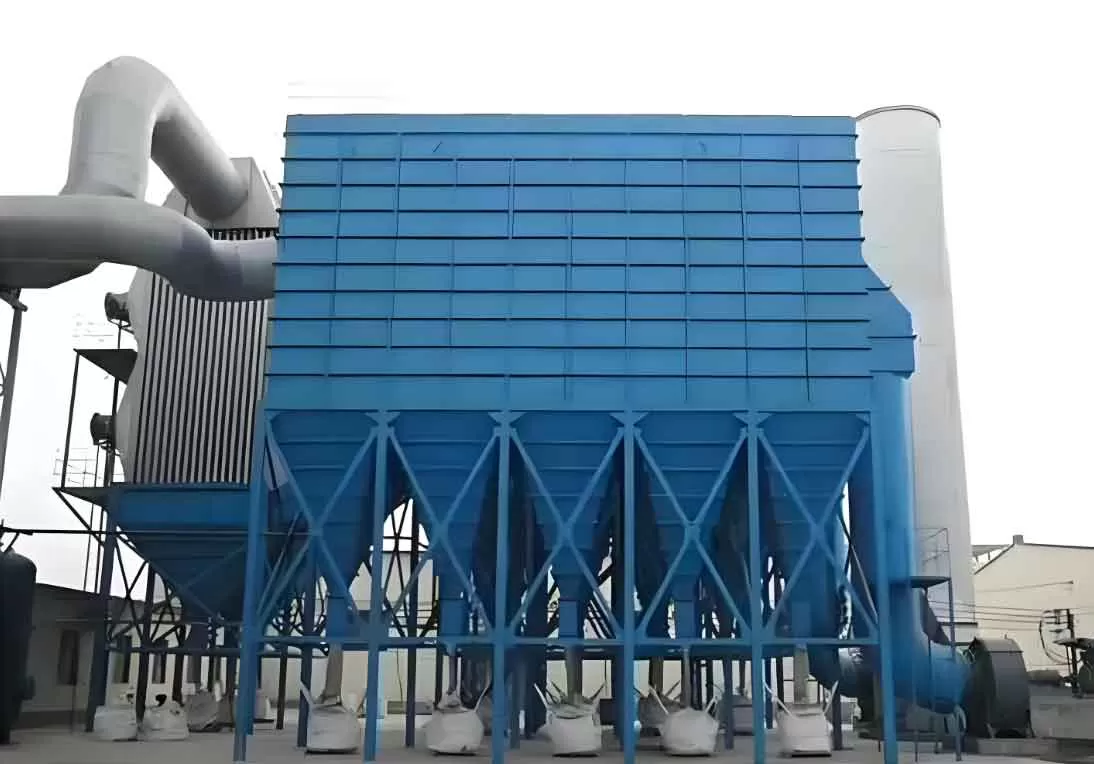 The Pulse Bag Filter consists of ash hopper, upper box, middle box, and lower box sections, with the upper, middle, and lower boxes featuring compartment structures. During operation, dust-laden gas enters through the inlet duct into the ash hopper, where coarse dust particles fall directly to the bottom of the ash hopper. Fine dust particles follow the airflow upward into the middle and lower boxes, accumulating on the outer surface of the filter bags. The filtered gas enters the upper box through the clean gas collection manifold and exhaust duct, then is discharged to the atmosphere via the exhaust fan.