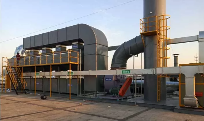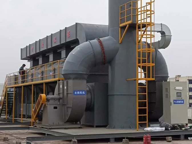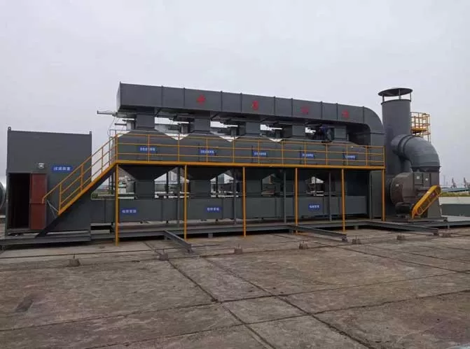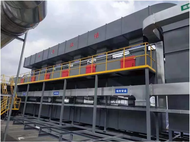 For high-volume, low-concentration organic waste gas, a pre-filter is first used to remove dust and large particulate matter. Subsequently, the waste gas enters the activated carbon adsorption unit. The adsorption boxes can be arranged in parallel, allowing one carbon box to undergo online desorption while the others continue adsorption, achieving a continuous operation mode. The entire adsorption process is automatically controlled by a PLC, precisely setting adsorption and desorption times.