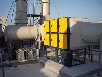 Oil fume waste gas discharged from the production workshop enters the industrial fume purifier. First, large oil droplets are removed by a front baffle and flow into an oil tank due to gravity. The remaining small particulate pollutants then enter the high-voltage electrostatic ionization zone. Here, strong electric fields charge the fine particles, turning them into charged ionic particles, achieving preliminary separation and purification.