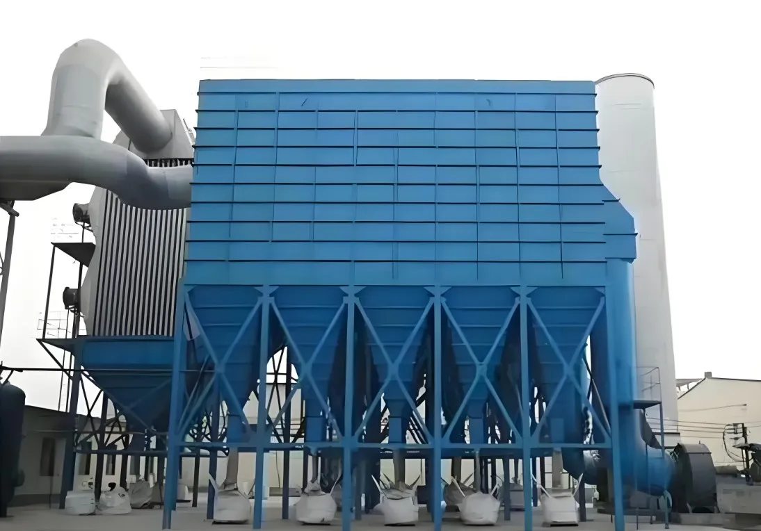 The cleaning process begins by cutting off the clean gas outlet duct of the compartment, placing the filter bags in a state without airflow (compartment offline cleaning). Then, the pulse valve is opened to perform pulse jet cleaning with compressed air. The cutoff valve remains closed for sufficient time to ensure that dust separated from the filter bags after blowing settles into the ash hopper, preventing dust from reattaching to adjacent filter bag surfaces after leaving the filter bag surface. This ensures thorough filter bag cleaning, with programmable controllers providing fully automatic control of exhaust valves, pulse valves, and ash discharge valves.
